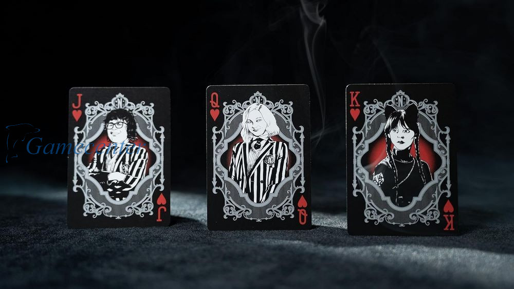 - Jedinstveni dizajn - kultni likovi (Wednesday, Enid, Marilyn Tornhill, itd.) na kartama sa figuricama, paukove mreže, gavrani, pirane i drugi mračniji motivi po celom špilu.