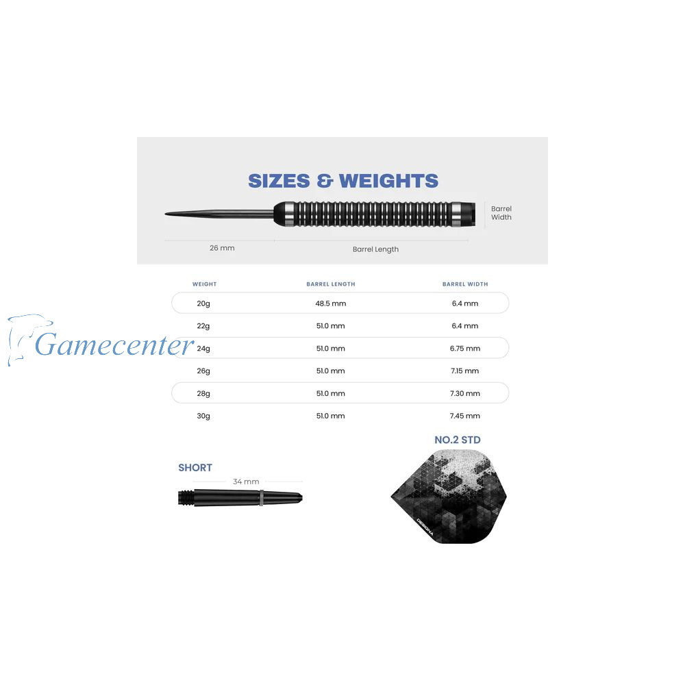 Dizajn strelica se sastoji od kombinacije crnih žlebova koji naglašavaju uglačanu površinu tela od volframa.
